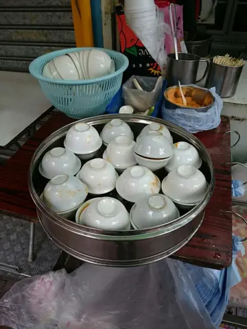 路過, 被那一碗碗放在木桶旁的豆腐花所吸引, 就算吃飽都要坐在街邊食碗花就在付款的前一刻, 饞咀的熊爸要加多件栥飯及腸粉栥飯要十多元一嚿, 好貴啊 飯一大嚿把人撐飽, 飯質軟腍亦無咬囗, 內餡只有一小片腍薄老油條, 再加幾條無鹹味炸菜 熊媽要點黃糖來伴吃才能KO那半嚿飯糰跟住食啖熱豆腐花, 滑是滑, 甜度算清, 可是......有燶味 一定是煲燶豆漿 從未吃過燶味豆腐花 腸粉都好不到那裏......口感質地膠膠, 挺身, 要用咬勁, 是完全無米味, 看來用粟粉、澄麵粉的量比粘米粉為多 最後, 估計因為是豉油、甜醬、麻醬的緣故, 吃後竟囗渴到不得了, 飲極水也止不到嘴唇乾、舌頭乾、嗆喉嚨結果是賠了夫人又折兵, 因貪吃而得到味精惡果Read More