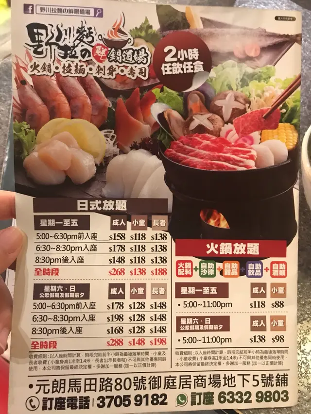 野川拉麵の鮮鍋道場 (Yuen Long) URL: https://s.openrice.com/QrKS05C0800 Add.: Shop 5, G/F, Springdale Shopping Mall, 80 Ma Tin Road, Yuen Long, Hong Kong Tel.: +852 37059182