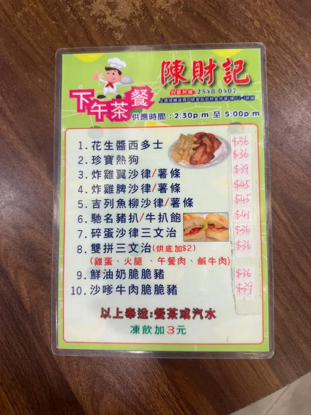 陳財記 (Sheung Wan) URL: https://s.openrice.com/QrKS0Vtm000 Add.: Shop CF1-3, 1/F, Queen Street Cooked Food Market, 38 Des Voeux Road West, Sheung Wan, Hong Kong Tel.: +852 25480407