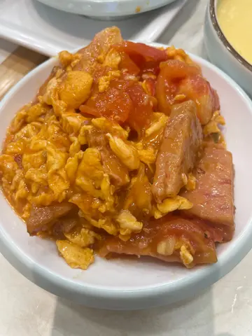 三色肉碎蒸水蛋蕃茄雞蛋炒午餐肉鳳梨咕嚕肉梅菜扣肉小炒香幹