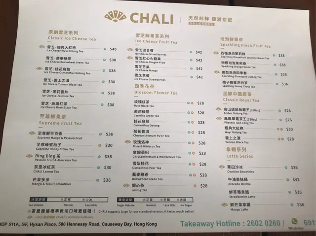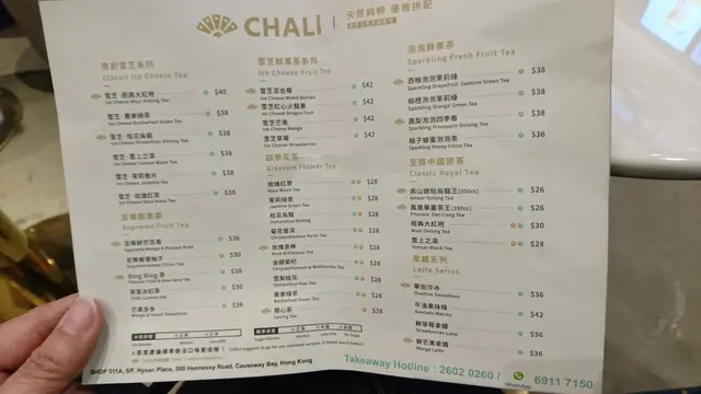 CHALI (Hysan Place) (Causeway Bay) URL: https://s.openrice.com/QrKS0SFe800 Add.: Shop 511A, 5/F, Hysan Place, 500 Hennessy Road, Causeway Bay, Hong Kong Tel.: +852 26020260