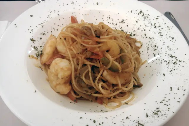 白汁煮大蝦帶子意粉 - 個名好似好普通,但係佢用原隻大蝦同帶子,加上些少辣汁,必食!
