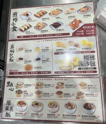 叫咗幾樣點心,分別如下:蝦腸 - 略嫌皮太厚,每條腸粉都有兩粒蝦仁蝦餃 - 大大隻,皮都係有少少厚,但佢d餡都多榴槤包 - $30蚊 3個, 無佢講到有爆漿/流心的效果。 大大個,拎上手已聞到榴槤味, 食落都多餡,有榴槤醬起入面。 一試無妨。 炸物 - 原價$6一件, 我$20買了4件。 選擇都多,有甜有咸點 分別買了2件芋角(我認為最好食, 芋頭蓉幾香而多、滑。 肉粒雖不多,但我覺得好好食) 1件春卷(大大件..餡就同蝦餃相似)及1件芋頭千絲蘇(芋蓉滑,但係食落甜甜地..似芋頭包d餡..唔係我杯茶..寧願食多隻芋角🤣)埋單$94。 整體一試無妨, 不過唔知係咪太早到關係,部分點心未有得叫住。但講味道/精緻就緊係返去酒樓好d。 呢到勝在快同價錢抵食,經過當買個快餐都可以🤣…Read More