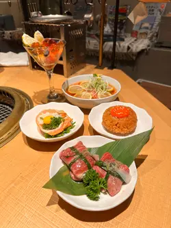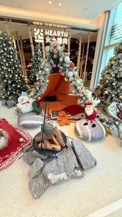 今次再訪以露營概念為主題的餐廳〔火土燒肉〕,知道餐廳已推出聖誕節套餐,馬上去提早感受節日氣氛。店內店外都已經放了不少聖誕裝飾,餐廳內部以木質用料為主,佔地甚廣環境闊落,有數張特色的露營檯及摺疊櫈座位,檯上更放有不多少露營餐具碗碟紙巾及露營燈,裝潢擺設都落足心思,室內每個角落都擺滿了專業露營用品及搭配綠色植物作佈置,更有舒適的梳化座位及數個帳篷露營用的大帳篷,坐在大帳篷下圍爐涼著冷氣吃燒肉嘆啤酒,實在是很好的享受。而室外設有戶外露天酒吧,酒吧更已經換上聖誕樹及冬日白色擺設佈置場地及有爆谷換領券,還有定時飄雪的浪漫效果,晚上非常有節氣氛,身處鬧市亦能與三五知己,圍著爐火感受露營的樂趣,實在是與別不同的燒肉體驗。而店員服務亦保持水準,細心有禮會主動提議換烤網及收碟,晚餐時段入座率都很高的,建議想吃要先打電話訂位。【燒肉煙花蛋糕】 之前已經在網上看到這個燒肉煙花蛋糕,已經覺得很吸睛,店員會點小煙火,儀式感滿滿,小煙火更是蛋糕上的點睛之筆,燒肉蛋糕由牛小排及牛三筋堆砌成,色澤鮮紅的牛小排,入口肉質軟嫩牛味濃,而牛三筋油脂多,有點像肥牛,輕輕燒幾秒,就看到油脂滲出,燒熟了就很香口,各有各喜歡,慶祝特別節日或生日必備,推薦。【A5和王牛三角腹肉】放在網燒爐燒時真的需要點技巧,店員看到我們雞手鴨腳馬上來幫忙燒,店員將肉燒熟後,將蒜鋪在燒肉上卷著,蒜沒有搶走牛肉的味道,入口柔軟蒜味很香,推薦。【塩蔥牛舌包】 牛舌包著滿滿的香蔥,燒熟後入口有滿滿的蔥及牛舌味道,絕配的配搭,吃時亦能保留香蔥脆嫩的口感。【熱帶風情海鮮雞尾酒杯】顏色鮮艷很吸睛,雞尾酒杯內有啫喱、藍莓、草莓、帶子刺身粒、吞拿魚刺身粒及北寄貝刺身粒,加上有黑醋汁,很醒胃的前菜。【味噌蟹肉甲羅燒】蟹肉和蟹膏等食材都放在蟹殼內,加入鵪鶉蛋及蔥花撈勻,放在爐火上慢慢燒來吃,燒香的蟹膏味道濃郁, 鹹香惹味,食材新鮮,推薦。【月見夢王蛋醬燒飯糰】 用了月見醬汁燒至飯糰表面微焦,飯表層有香口飯焦的口感,加入夢王生蛋流出的蛋汁,入口外脆有蛋香,拌燒肉吃,非常特別又有特色。【柚子梅素冷麵】 加入柚子製成冷麵湯底,配上清涼的梅素冷麵,冷麵麵質很好,冰涼口感與清爽滋味很解膩。【芒果椰香梳打】杯上有椰子製成的泡泡,加上芒果口味的梳打,氣泡感十足,輕盈解膩。【銀嶺月山佐佐良月】入口有很清香清酒味道,口感順滑很易入口,店員會用日式冰酒壺保冷清酒,相當貼心,喜歡飲清酒的朋友就不要錯過了。…Read More