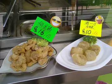 蒸粉果已經唔係咁多舖頭做得好食,重要炸喎,緊係要試一試佢啦。唔試尤自可,一試就不得了。老闆娘重送埋啲炸菜過我試吓o添,嘩!