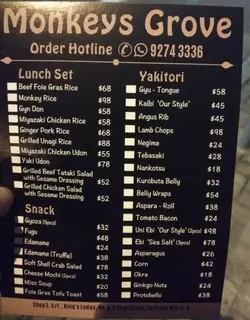 "Friday's the best day in the weekday", that's what one of the customers at our workplace said yesterday. And just when I was about to time out of my workplace, my boss ends up ruining my day by blaming me for something stupid - my Friday - and I'm not the kind who can easily let negative words slide off of me. So when I was tram-ing back to my apartment, I remember there was a newly opened Japanese shop that I bookmarked in OR. I got off the tram and headed there to hopefully get some late night snack to cool me down. When I got there, I saw this being advertised outside their small but cozy-looking shop.A man, rather, one of the owners who was wearing a suit and a pair of glasses, immediately stepped out and sales talked me to come inside and try their food. He didn't really need to as I was already planning to go inside nevertheless. The shop only has 7 seats so large groups aren't really recommended. When I was ushered in, I feel like I came in on a soft opening day. It seems like the bosses' friends came in to try their meals and comment how they were. If my novice level Cantonese serves me right, this shop was created by a couple of brothers who love Japanese food and decided to open one. They also like to "monkey" around sometimes, hence the company name. The brothers are all friendly looking people. They're also very charismatic. If you can speak decent Cantonese, you hit them up for a good long chat. Their menu is offered both in Chinese and in English. You can ask for the English one by request, or they'll immediately give it to you if you obviously look like a Westerner.I was told that their tea time meals are being offered at night as well, at the same price. It was late at night and I only wanted something light. I chose the Chicken Salad ($52). It took some time to get my salad to come but it just tells you how fresh and made-in-house their meals are. While I was waiting for awhile, the suits wearing boss offered me miso soup and said that it's included with my order.When I saw this, I was immediately appalled because usually when a shop wants to imitate Japanese food, they end up being MSG-salty or are just bad and bland. But to my surprise, it tasted as good as the one I had when I was in Canada. It tasted very real, well-made and had no hint of MSG. Even when I returned back to my apartment 30 minutes later, I didn't feel a hint of after effect. It washed away my irritation against my boss that night and I felt horribly ashamed for thinking bad about their food a second ago. The bowl had plenty of chives, which I really love and appreciate, and when I mixed it up, it didn't even show any poorly mixed miso paste in water. There were even soft and bouncy tofu cubes and had a good amount of seaweed. After waiting some more, my salad finally came. The presentation was good and it would have been nice if they presented it in a plate like how the customers had theirs. Was it because I was an outsider to their soft opening or is it because they were close to closing time that they didn't want to wash any more plates? I really don't know the reason but whatever. It had a fresh tomato cut into two and two slices of cucumbers, plenty of greens and 4 to 5 slices of chicken garnished with chives and sesame sauce.The depthness of the salad.Beautifully made pieces of chicken.I was really satisfied with the taste. Not a hint of sourness or was there any bad taste in it at all. The chef knows what he's doing.I searched at their photos in OR and saw their gyoza. I felt like something was lacking after my salad. My stomach wanted to eat more so I ordered it. Five pieces of gyoza priced at $32. I asked for it from the suits owner and he smiled at me gleefully, he was definitely super happy that I ordered more. Their gyoza is a little smaller than what I saw in their photos but I didn't mind. All I care are the taste and quality. The skin was a little thick that what I'd hope but it's still good nevertheless. The meat inside is also good and delicious. There was no fillers in any of them too!Cash only. There is no 10% service charge. I really love that they serve quality and homemade food. They really take care of their food and their customers' happiness. I hope that this shop is here to last for decades to come and that this kind of quality service is here to stay consistently and forever. It's really hard finding a shop that offers excellent food and well-appreciated customer service. The price might be a little above average for some but it shows in their food and in their customer service. Even though the other brothers can't speak English, they still show effort in making me feel at ease at their shop from start to end. Afterall, one of them, was kind enough to hand me their English menu after knowing I can't speak their language.…Read More