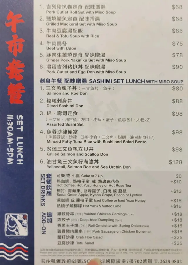 Nishiki Don (iSQUARE) (Tsim Sha Tsui) URL: https://s.openrice.com/QrKS0dfq000 Add.: Shop 702, 7/F, iSQUARE, 63 Nathan Road, Tsim Sha Tsui, Hong Kong Tel.: +852 26280802