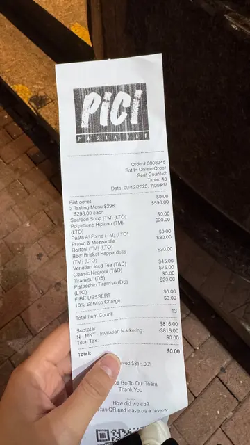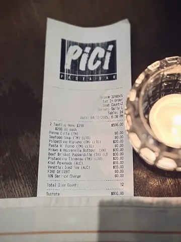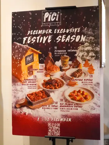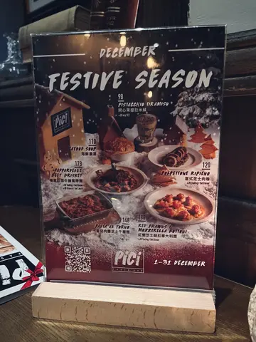人氣手工意大利麵專門店 Pici 每個月都會推出全新菜式,踏入十二月就換上聖誕主題限定節慶美饌,於全港九間分店推出六款聖誕節主題菜式,還可參加聖誕抽獎,即有機會贏取來回大阪雙人旅遊套餐包來回機票、住宿連早餐大獎,二獎及三獎亦有香港啟德帝盛酒店尊尚海景客房住宿兩晚及Pirata Group餐飲禮券 HKD2,000,尖沙咀分店已經換上聖誕裝飾,添上濃濃的節日氣氛,在昏黃柔和燈光的映照下,復古風情裝潢甚有格調。Tasting Menu 每位$298,包括2款前菜、3碟意大利麵和2個甜品,比單點更抵食,還可一次過試齊最新菜式,下單後侍應就會奉上餐包,可以沾上橄欖油與黑醋。海鮮濃湯剛剛出爐的酥皮金黃鬆化,牛油香氣濃盛,龍蝦湯色澤紅潤油亮,湯頭濃郁鮮甜而又帶點黏口,真材實料加入大蝦、章魚、青口和劍魚。意式芝士肉卷以焦脆煙肉層層包裹由牛肉、雞蛋、意大利熟火腿和布旺倫芝士組成的充實餡料,鹹香奶香相互交織,配合小扁豆和紅蘿蔔蓉墊底,賦予味覺上的多重層次感。番茄肉醬芝士千層麵表面烤到金黃色,覆上熔岩般的布旺倫拉絲芝士,份量澎湃,芝味濃烈,以薯仔麵糰為基底,口感綿軟又煙韌,夾雜濃郁香醇的肉醬、柔滑細緻的白醬、意大利熟火腿和蛋黃。紅蝦芝士鈕扣意大利麵 +$30Bottoni在意大利語中解作鈕扣,就像一個圓形的意大利雲吞,麵皮滑身帶煙韌咬口,裹滿味濃柔嫩的莫薩里拉芝士和馬斯卡彭芝士內餡,綴以彈牙的紅蝦他他,淋上鹹鮮醒胃的烏魚子醬汁、檸檬、忌廉及鯷魚。慢煮紅酒牛腩寬帶麵 +$30牛腩大件厚肉,經過慢煮後肉質被柔化,卻仍帶有嚼勁,尤其適合搭配紅酒醬汁那種深沉酒香,牛味醇厚細膩,手工意粉與乾意粉最大的分別就是彈性中帶點煙韌的麵質,挺身富有Al dente咬口,加上吸水力極強,因此極易掛汁。開心果提拉米蘇 +$20經典招牌Tiramisu趕上近期大熱的開心果熱潮,粒粒開心果碎揉合細滑開心果醬,散發純粹濃厚的果仁芳香,以杯裝盛載還有助保持細緻濕潤的質感,入口即化。意式紅莓醬奶凍奶凍入口軟滑水嫩,上層為酸酸甜甜的紅莓醬,綻放明亮清新的果香,正好可以平衡甜度。兩杯mocktails Kiwi Pomenade $55及 Venetian Iced Tea $55,冰爽解渴,又可消滯解膩。…Read More