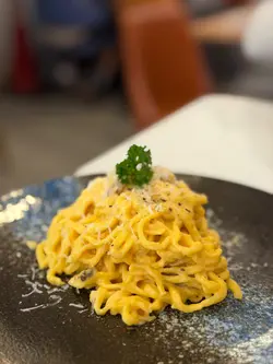間店嘅decoration好有特色, 好多手繪畫同揮春.啲畫色彩豐富又帶點歐洲小鎮嘅氣息.坐係度食嘢傾偈真係特別chill.Lunch Set有幾款手工意粉同意大利飯選擇.我哋兩個都揀咗湯同手工意粉.南瓜湯真係有驚喜.我冇諗過個湯有拉花㗎!仲要兩碗湯嘅拉花都唔同.一隻係兔仔, 一隻係恐龍.兩隻都畫得好靚, 好得意.個湯口感好creamy.好濃南瓜味.湯配埋蒜蓉包.個包熱辣辣, 外脆內軟.點湯食都好好味.簡直絕配!意大利牛肉醬手製闊條麵 (HK$108)成個意粉都好香牛肉味.闊條麵有咬口.味道唔錯.卡邦尼手製意粉 (HK$108)我出街食意粉, 必揀卡邦尼.雖然呢個意粉未做到一試難忘, 但都算係一個好好食嘅卡邦尼意粉.意粉口感彈牙.食落有淡淡嘅煙肉同蛋香.整體嚟講,南瓜湯嘅創意拉花令我留下深刻印象.手工意粉值得一試.星期六日同朋友過嚟食lunch同埋傾吓偈都唔錯.…Read More