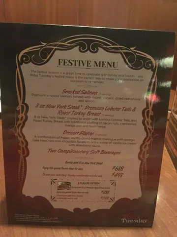 之前同朋友慶祝生日但係唔記得咗幾時了,因為有朋友有半價咭所以過咗嚟呢度食。叫咗一個芝士薯條,比起之前做嘅更好味。另外叫咗一個雞翼評判,裏面有普通雞翼立美雞翼同水牛城雞雞翼啲汁好香口又唔會整到隻雞翼林晒。同埋叫咗一個蟹餅配沙律,呢個就麻麻哋,食落冇乜蟹的味道,唯一好嘅就係啲沙律菜夠新鮮。仲有座一個牛扒同埋一份鐵板牛扒,鐵板牛扒雖然放喺鐵板度單都唔會覺得好膠,普通牛扒就非常之好味,快牛扒好重牛味,成數啱啱好唔會太熟,又夠大份,果汁又好味。最後叫咗一個朱古力蛋糕配雪糕嘅甜品,蛋糕有雪糕配合非常之好味,但係當你食完啲雪糕之後整返個鬼死咁大哥嘅蛋糕,個蛋糕又乾,如果可以加多少少雪糕或者cream或者個蛋糕比較濕潤啲就佩服了。有半價咭真係好抵食,食咗咁多嘢都只不過係每人二百幾蚊。