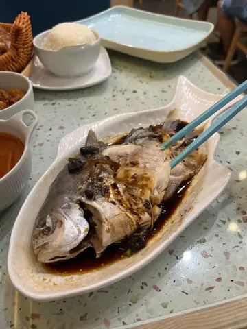 老友向來食嘢比較健康,所以,瞄準晌健康蒸選度揀,餐牌都標明蒸魚需時15分鐘,食好嘢當然等吓無所謂。揀豉汁就特別惹味,條倉魚好大條,望落去色澤閃閃爧,食落去真喺蒸得啱啱好,啲肉無黐骨,而且,肉質挺身而嫩滑,又好有魚嘅鮮甜味,當然啲豉汁都好正,撈飯真喺無得輸。