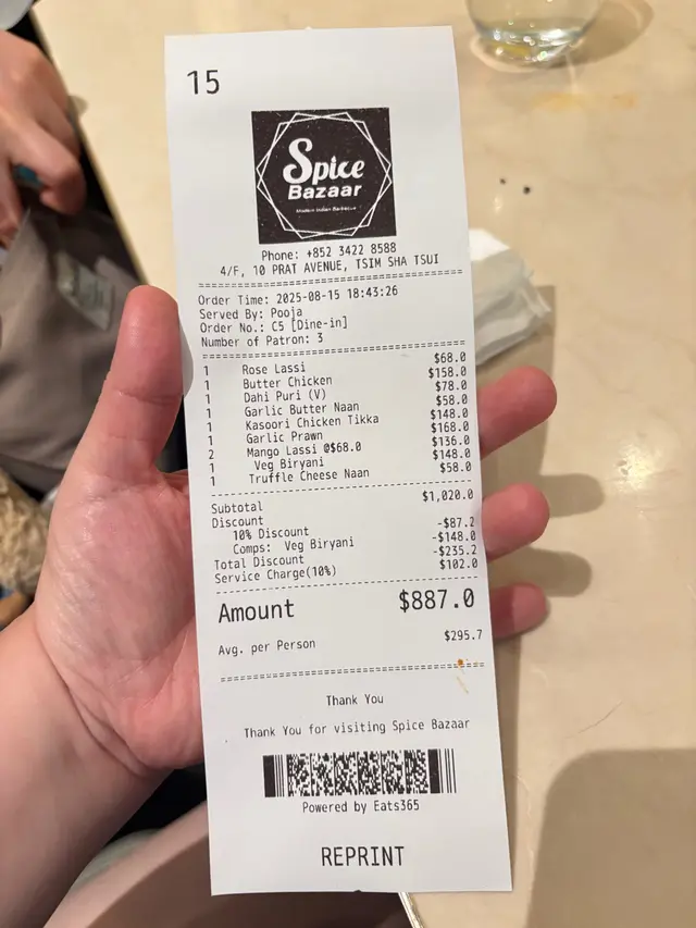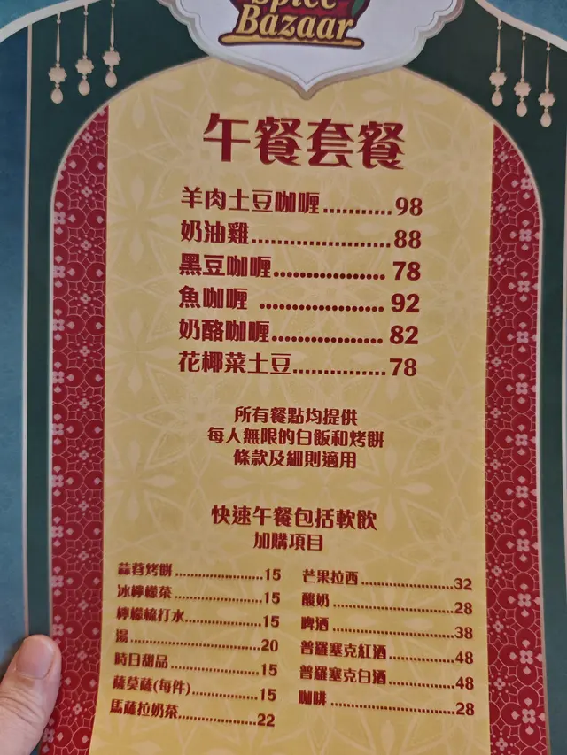 Spice bazaar (Tsim Sha Tsui) Book online for up to 10% off and earn Rice Dollars URL: https://s.openrice.com/QrKS0PQ0D00 Add.: 4/F, 10 Prat Avenue, Tsim Sha Tsui, Hong Kong Tel.: +852 34228588