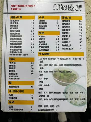 成日坐車經過灣仔都會望到呢間新深粥店,今日有機會試下佢地既出品。早餐時段到店,坐滿8成食客,揾到個位坐低睇下個餐牌,佢地有好多款粥品選擇,我最後點了一碗艇仔粥同一碟牛肉腸。好快兩樣食物一齊送上,都係熱辣辣的。粥底係用一粒粒米煮成既,配料有碎牛,水魷同埋豬皮,味道偏淡,至於牛肉腸就得個豉油味,一d牛肉味都冇。[米饭]口味:🥚🥚🥚[薄荷]环境:🥚🥚🥚[服务铃]服务:🥚🥚🥚[糖果]性价比:🥚🥚🥚Read More