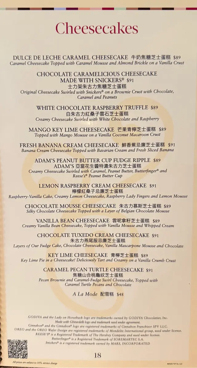 呢間美國西餐人流真係冇少過 Weekend 去到夜晚要等1個鐘左右 係出面排隊有個提示機等大家知道call緊!入面環境真係好warming 又大又多人整體就係好熱鬧好有食慾嘅場景 今次帶大家睇下有咩必食!🍞坐底就會有人頭份量嘅包 黑色係燕麥黑糖包 黃色係酸種/法包(有小小酸) 兩隻拉扯感都好夠 可以點牛油或者pasta醬都勁夾!🍝Louisiana chicken pasta💰228蝴蝶粉係cheesecake fac算係吸引之一!!相比起其他意粉 撈得勁creamy 辣味比較突出 份量都真係幾多 大大舊3-4塊雞扒炸得非常乾身(係黑脆嘅樣)立身於意粉之上vs.🍝 Farfalle with chicken and roasted garlic蒜香蘑菇雞肉蝴蝶粉都係另一隻經典 呢款就會係蘑菇 雞胸肉搭配奶油醬 會冇咁熱氣但同時都幾漏 但蝴蝶粉真係好有嚼勁!🌮factory nachos💰173冇諗過呢間竟然係我食過最滿足嘅nachos😭(可能因為份量多)大大pat 牛油果蓉 番茄粒粒同cream直接dak係nachos上面 外圍部分嘅粟米片好乾脆 入面個D被cheese浸淋我都超級鍾意 份量來講真係無得頂🍛shrimp and chicken combo💰228見到有人話呢個係signature must try 中間嘅飯(唔可以話係燴飯 似墨西哥個隻乾身D嘅米)被一圈嘅creamy醬汁圍住可以直接將飯撳低浸入D醬度 撈勻都辣辣地 幾有滋味🥗shierla‘s chicken and avocado salad💰228想要清新沙律?sorry we dont serve that講笑但係沙律來講呢度都係default撈勻曬D牛油果醬 所以清新得來其實都好滋味!🍕the everything pizza💰162我個人覺得美式餐廳可以skip佢地嘅pizza 雖然芝士拉絲感十足 而crust都好有咬口同脆身 不過形狀比較特別 而且可以留返去D正宗嘅食DESSERTS甜品部分原來食完waitress係會拎住menu來問要唔要cheesecake 不過來到就梗係要試啦😻🍰oreo dream extreme cheesecake💰93我地有研究過究竟邊隻會係最膩嘅候選人 而呢款榮獲頭五 雖然predict左幾漏 但可能已經受甜品洗禮完 同想像中都有D差別冇話特別漏講返呢個cheesecake有5層 最top係oreo碎插係朱古力ganache入面(偏後有pat實淨D我覺得似食緊生朱古力)下面係oreo cream 最中間係混左oreo嘅cheesecake本體 下面就係朱古力mousse同朱古力蛋糕體(背面有小小朱古力碎)口感來講五重真係好豐富 可能朱古力層多所以會漏 但整體唔會真係美式甜度 鍾意oreo嘅值得一試!btw我覺得佢地嘅whipped cream簡直就係用來解膩🍰肉桂捲芝士蛋糕💰93雖然好鍾意cinnamon但呢隻冇想像中出色雖然疊得好高但係好容易融化之後就塌左 相比起食cheesecake似食whipped cream多D 肉桂味唔算特別突出🍫Linda‘s fudge cake(特濃朱古力蛋糕)💰93呢個唔係godiva個隻signature cheesecake 其實係choco brownie 每一層中間都會再夾住choco mousse所以都真係朱古力上頭咁 易膩決定左每次去都要試新野 睇下有冇個list可以跟 儘量試多D menu嘅野😋…Read More