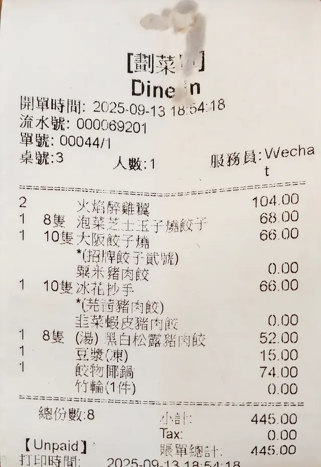 <三一餃子> @ttdumplings 小店一直致力於係香港推廣餃子酒場文化🍶,每位客人都會送一杯清酒#mochicouple_hk中環搵食團⸝⸝⸝♡ ꔛ ꔛ ꔛ ꔛ ꔛ ꔛ ꔛ ꔛ ꔛ ꔛ ʕ´•ᴥ•`ʔ ‧˚1️⃣火焰醉雞翼($52)店員會拎住火槍即場幫隻雞翼點火🔥,勁有表演感,好似餐桌live show咁!燒到外層雞皮焦香,散發住一陣陣烤香味😍。雞肉本身浸過酒,啖啖肉嫩滑多汁,仲有淡淡酒香滲出嚟,口感好juicy!沾埋柚子醬🍊,酸酸甜甜再加少少清新果香,開胃度直線UP📈2️⃣ 泡菜芝士王子燒餃子($68)完全食到停唔到口🤤餃子放係蛋漿上面☺️煎得金黃脆口,上面舖滿芝士🧀,仲要現場用火槍🔥燒到半熔狀態,勁似Pizza!一口咬落去,首先係香辣泡菜嘅酸辣味,緊接住就係蛋香同濃濃芝士味,雙重層次爆炸🤤。我試咗辣同唔辣兩款,覺得加辣醬會更突出餃子嘅肉汁香味,辣味刺激食慾,仲好啱配埋酒一齊食🍶!3️⃣大阪餃子燒(招牌餃子貳號+粟米豬肉餃)($66)呢款絕對係創意之作💡,將大阪燒同餃子結合,第一次見到都覺得新鮮!餃子表面鋪滿沙律醬、柴魚片同紫菜絲。餃子外皮炸得金黃脆卜卜,入面餡料超juicy,充滿肉汁💦。粟米豬肉餃子甜甜地,肉香同粟米清甜mix得啱啱好;至於招牌二號餃,就更突出肉味,香氣十足。唯一係覺得醬汁可以再多少少會更惹味,但整體已經係CP值爆燈👍!4️⃣冰花抄手(芫荽豬肉餃+韭菜蝦皮豬肉餃)($66)小店嘅煎餃用咗日式慢烤煎法,底部形成薄薄「冰花脆皮」✨。餃子餡料實在,芫荽豬肉清香,韭菜蝦皮鹹香濃郁,兩款都係外脆內juicy。完全唔油膩👍🏻,啖啖肉汁鎖住風味,食落口感層次勁正。呢個冰花皮真係加分位,堪稱本店必食!5️⃣黑白松露豬肉餃($52)未食已經聞到松露香氣濃烈🤎!咬落即刻爆發濃濃松露味,完全包圍住豬肉鮮香,層次感超立體。香氣濃郁但唔會過火,反而同豬肉餡料融合得好好。鍾意松露味嘅朋友,一定會食到停唔到口。真係香到連隔離枱都會望過嚟🤭!6️⃣餃物椰鍋+竹輪($74)熱辣辣上枱,椰香湯底滾住出場🤩!加入粟米粒、椰子粒、芋絲等餃子,啖啖椰香清甜。揀咗蒜芯餃,肉香夠突出,雖然未算飽滿,但味道唔錯。鍋入面仲有豆腐、鴻喜菇、芽菜,全部索晒湯精華,好清甜!豆腐超嫩滑,一啜入口即溶。再加$6竹輪、$4芋絲,完全係正宗日式火鍋配搭,掛湯一流!7️⃣豆漿($15)抵飲之選!豆漿超濃郁,帶豆香,口感滑順。最驚喜係唔會太甜,感覺自然清爽👍🏻。飲落去有種懷舊豆漿鋪風味,餐後飲一枝真係解膩又舒服。價錢平實,CP值極高!8️⃣日本清酒二段酵母仕込($78)呢支清酒入口香甜🍶,帶微微果香,酒精感唔算重,好易入口。配餃子一齊食,完全提升風味,成餐瞬間level up✨。飲落順口,慢慢滲出米香回甘,女仔都會好鍾意。⸝⸝⸝♡ ꔛ ꔛ ꔛ ꔛ ꔛ ꔛ ꔛ ꔛ ꔛ ꔛ ʕ´•ᴥ•`ʔ ‧˚🌟想知道更多美食🤪記得follow@mochicouple_hk啦😍🎉📸📍 中環利源西街7號地舖🚇 港鐵香港站C站出口,步行約4分鐘🕒 Mon-Fri:11:30-21:30 Sat:12:00-20:00 Sun:Closed#香港美食 #太子美食 #餃子控 #居酒屋風 #火焰雞翼 #芝士拉絲 #大阪燒餃子 #冰花煎餃 #松露餃子 #餃子火鍋 #清酒文化 #香港餐廳 #必食清單 #太子餐廳 #香港探店 #抵食之選 #人氣餐廳 #香港餃子 #打卡美食 #邪惡小食 #美食推介 #餃子酒場 #香港吃喝玩樂 #飲食推介 #酒友必試 #深夜食堂 #餃子聚會 #香港宵夜 #食好西…查看更多