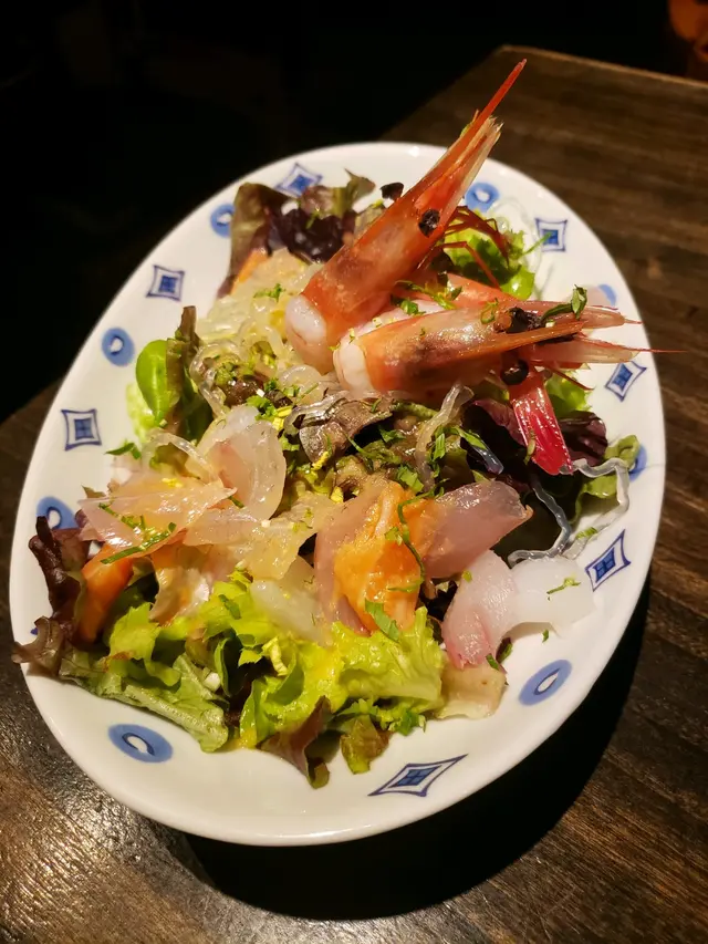 此刻,綑綁我的嘴巴是海鮮沙律,兩隻蝦在討論什麼已阻擋不了我的食慾,醋汁的微酸令沙律菜更入味,菜是鮮鮮鮮,開胃恩物,口感提昇,前菜裡也有多塊小魚塊,混入口中,提升味感,妙趣的開場!