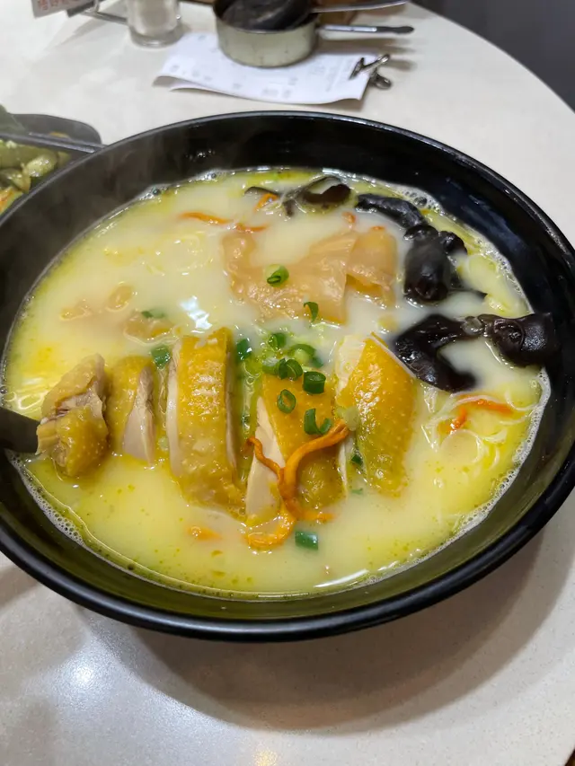 這個是全店我最推薦這個的藥膳黃酒米線,雞湯湯頭再加酒香的加持,比其他米線湯底濃得多!麵可以選擇用鍋上還是碗上,夏天的話,我建議用碗上,不然吃到滿頭大汗。雞肉份量多,口感爽脆鮮甜。