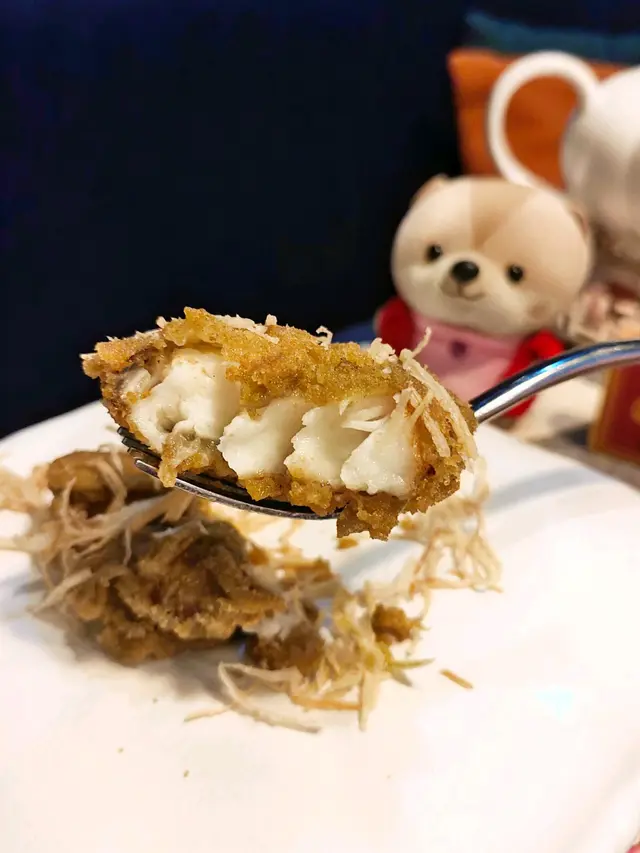 用苔菜包著鱈魚炸到金黃色,鎖住肉汁保持鮮嫰的質感。也是金黃色的賣相欵,外脆內軟的質感,味道微咸惹味。面層放有大量京蔥絲,香脆口感拌魚吃味道挺香的。