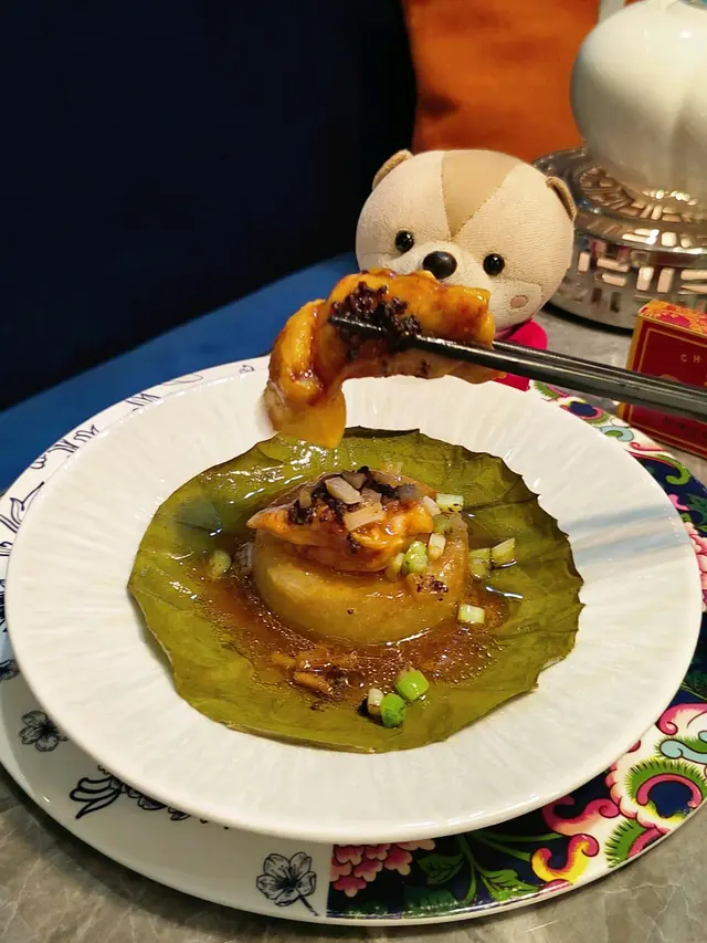 用荷葉蒸出來的美食,感覺多了份清香味欵。雞肉厚身嫰滑,所以不會感到韌。醬味香濃做得入味。底下有瓜子,吸收醬汁味道吸引,可以來碗飯一起吃。