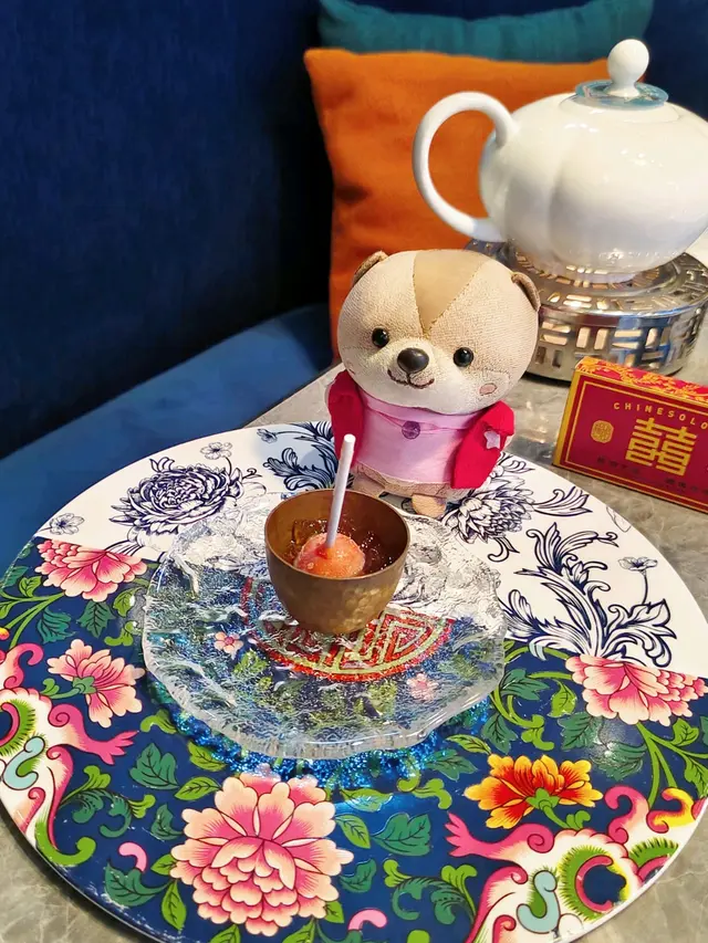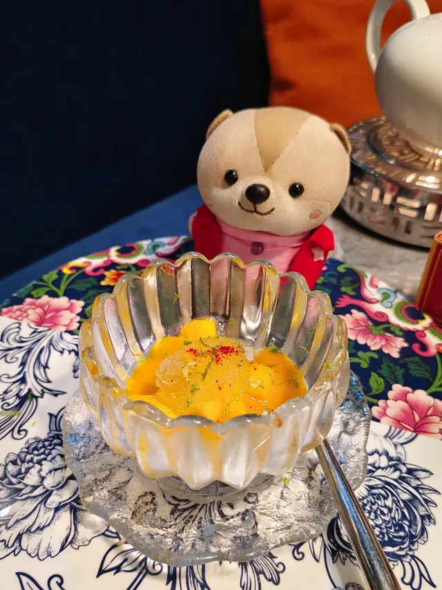 造型特別的菜式欵,先清清味蕾迎接下道菜式。用番石榴雪葩製成,口感清新又冰涼,酸酸的味蕾中和食物油膩感。底下有軟滑桃膠,起吃來挺有嚼感的。