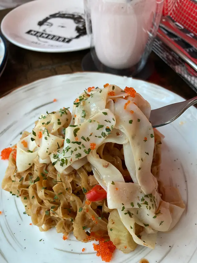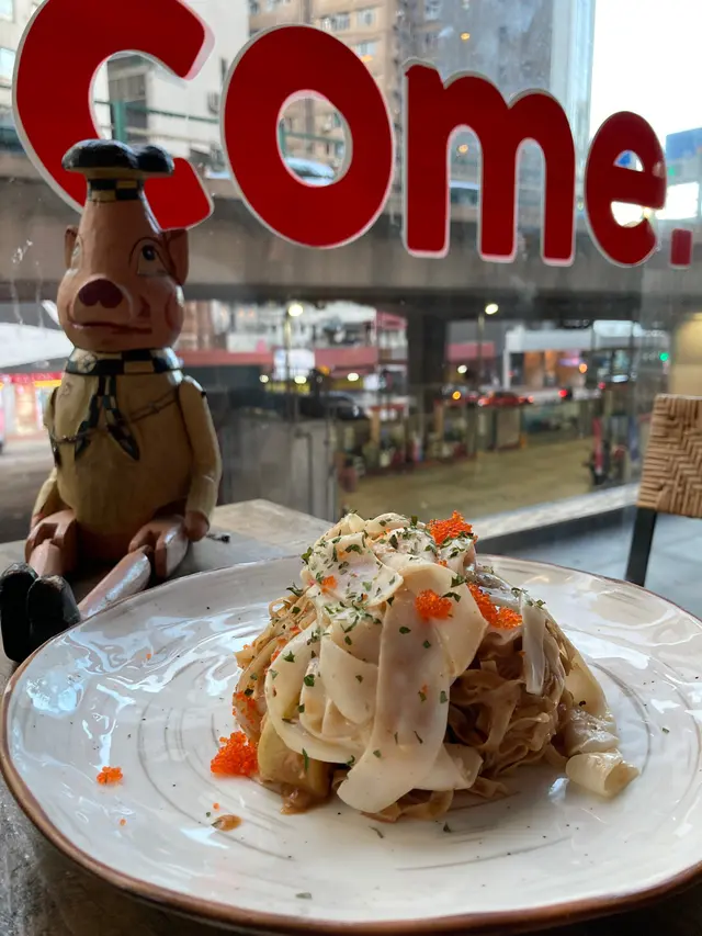 魷魚片切得好薄,形狀有啲似意粉咁,估佢唔到咁鮮美,幾有嚼口😆 配搭埋港式風味嘅沙嗲醬蝦子撈麵,爽質爽口彈牙,撈起入哂味🤩