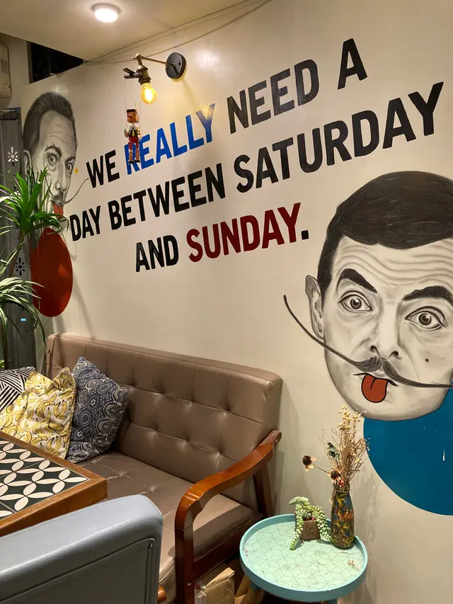 設計一如既往走街頭風塗鴉風,夠哂玩味,超多打卡位~每道菜嘅名稱都好有心思,非常搞笑🤩雖然地方唔大,但都坐得幾舒服 🥰