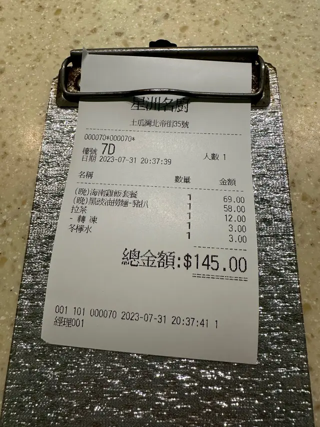 1. 海南雞飯套餐 ($69)