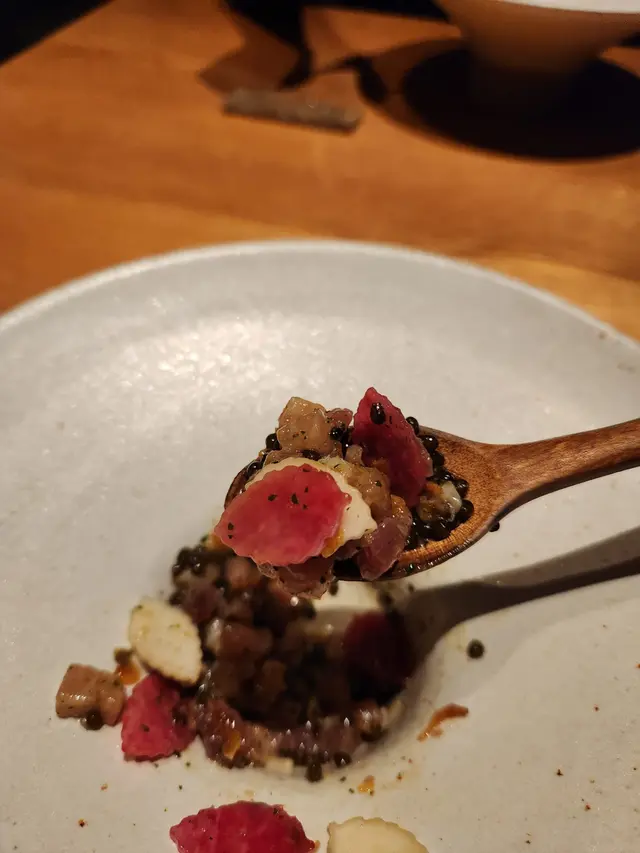 呢一個菜式極為精美,上面有滿滿嘅魚子醬😳令到成個蒸蛋充滿鹹香。蒸蛋中仲有粟米、甜蝦同埋菠蘿。識落口味道層次非常之豐富。蛋滑身得來仲有啲咬口,有少少似我哋平時食開嘅茶碗蒸。