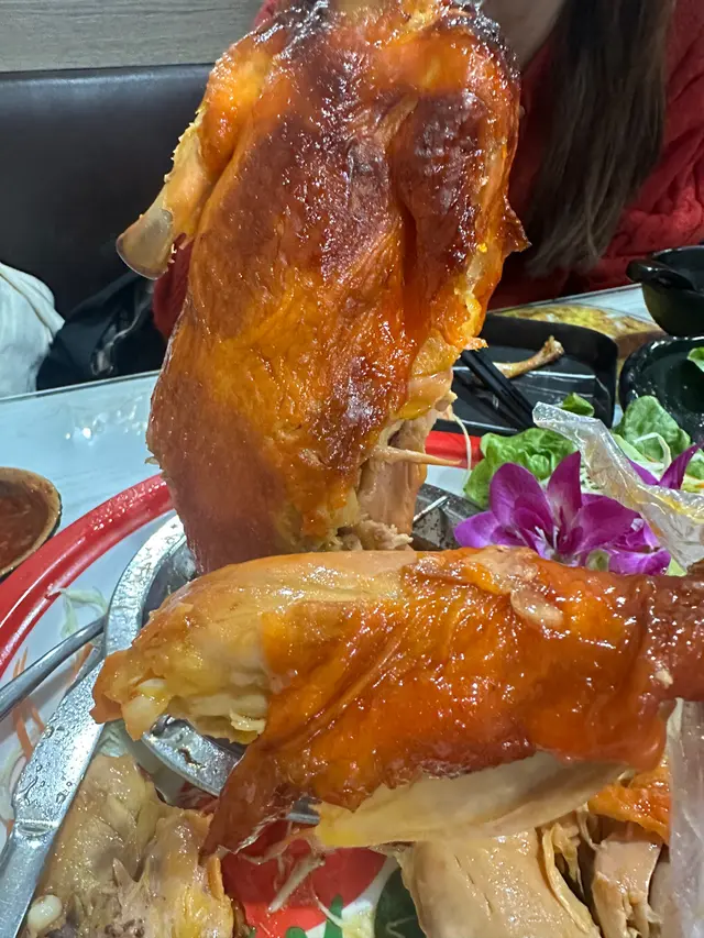 見到好多台都有叫一於叫一隻試下,一上枱就係原隻燒春雞,店員俾我哋影個全相之後就現場加火特效,變成火焰燒春雞,相當全程矚目,燒完之後個皮好卜卜脆,一撕落嚟啲肉汁不斷流出,識落鮮嫩多汁亦醃得好入味👍🏻推薦之一