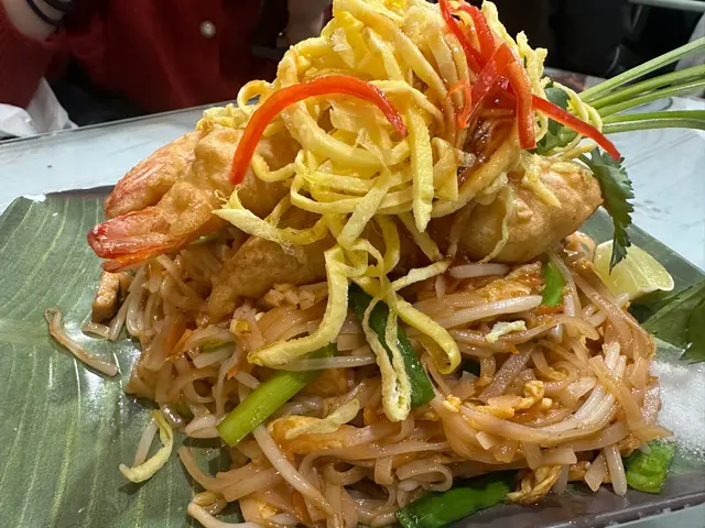 金邊粉炒得乾身,仲有幾隻原條炸蝦,連埋蝦頭嚇一嚇😂食落幾彈牙,但個粉食落較甜蓋過個酸味,旁邊仲有砂糖及花生,唔洗點已經比較甜