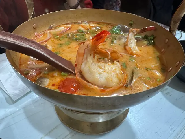嚟到泰式店,當然要飲過冬陰功,飲落酸酸辣辣10分開胃,仲用個小火爐熱住暖笠笠,入邊仲有幾隻蝦同菇好足料