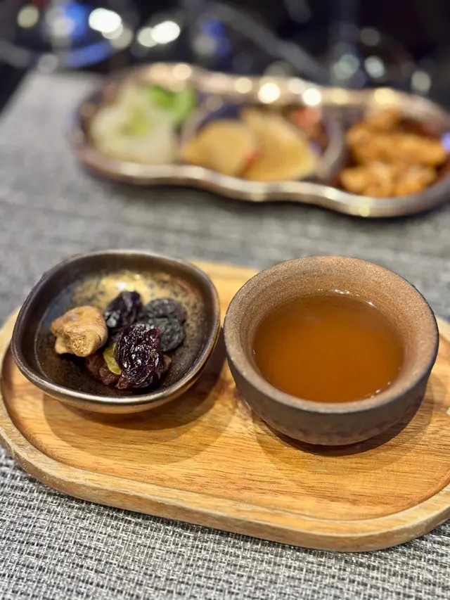 江師傅以妙玉嘅高雅品茗習慣為題,特選陳年果皮同雪梨燉煮成茶。湯色金黃透亮,入口清潤甘甜,陳皮嘅微辛同雪梨嘅清甜交融,餘韻悠長。配上無花果乾、士多啤梨乾等乾果,甜中帶酸,層次豐富,猶如妙玉孤高嘅性情,既清雅又帶點疏離感。