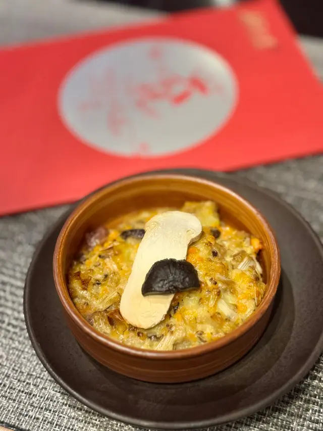 酥皮焗至金黃鬆化,內藏蝦肉同雜菌炒成嘅餡料,鹹香惹味,脆中帶嫩。櫻花點綴,呼應惜春「獨卧青燈古佛旁」嘅結局,酥脆中帶淡淡禪意。