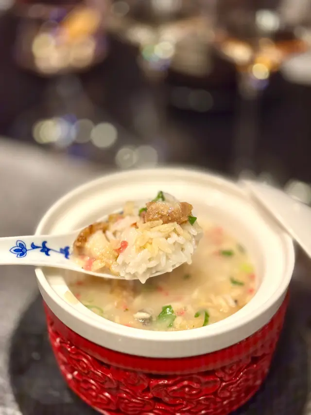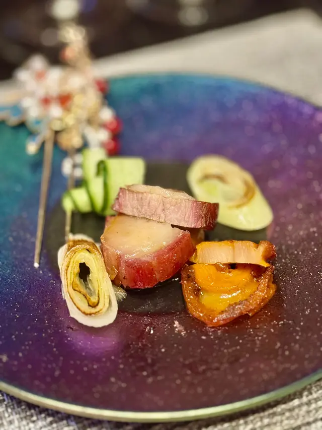 八頭鮑魚燜至軟嫩入味,搭配冰肉同蜜汁叉燒,串起烤至焦香,外脆內嫩。擺盤用大紅器皿,華麗奪目,呼應元春貴為皇妃嘅雍容氣派,每一口都奢華滿足。
