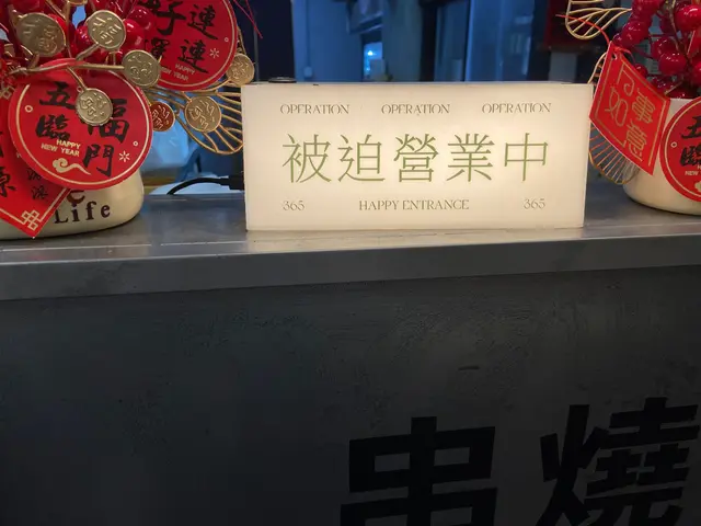 收銀處櫃檯有個好搞笑board,叫做被逼營業中😹
