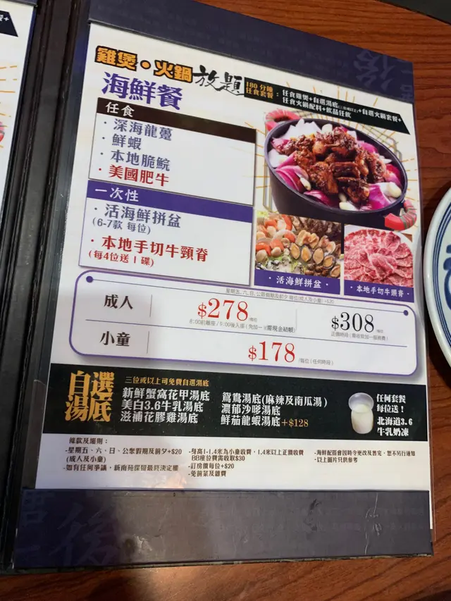 整體加一後300蚊食到咁新鮮海鮮雞煲放題認真唔錯😎雖然唔夠人手.但侍應都非常盡責而且保持到有禮貌👍呢點真係要讚下😎