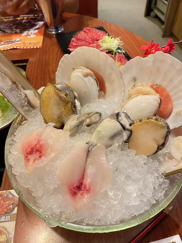 套餐會有一盤精選海鮮「海蝦、脆鯇片、大聖子、扇貝、刀貝、生蠔🦪及鮑魚」全部都好大隻新鮮美味🤤以呢個湯底滾熟仲將鮮味提升了👍