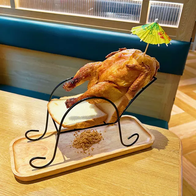 沙灘沐浴雞:吸睛又搞笑的造型,金黃色的外皮夠香脆,雞肉不夠嫩滑