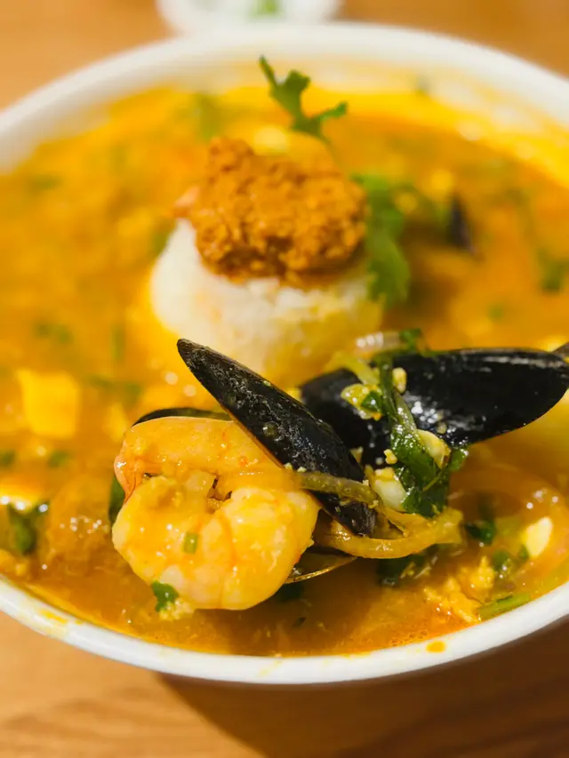 🦀 海防蟹膏海鮮湯飯:蟹膏一堆咁放咗上飯上面係幾特別,湯底鮮味十足,蟹膏同海鮮嘅香氣好夠,飲落有啲甘甜,唔會死鹹。飯雖然份量唔算多,但湯夠濃郁,食到飽飽哋,好滿足 😌。