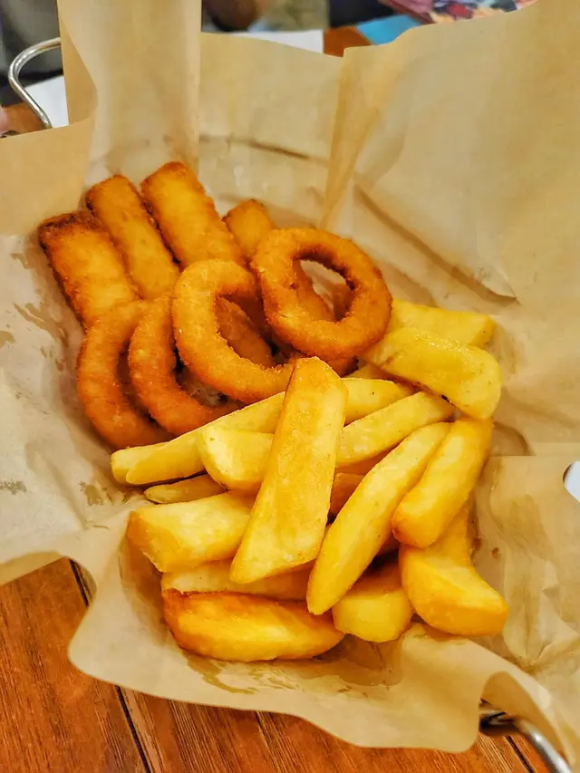 前菜方面有沙律同好多款炸物小食🍤例如有薯條、洋蔥圈、魚手指同炸雞軟骨粒等等,送酒真係一流,唔會太鹹和油膩😌