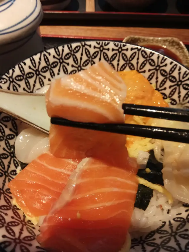 三文魚刺是魚腩的部分 ,色澤光潤 ,油脂分佈平均,新鮮好吃!