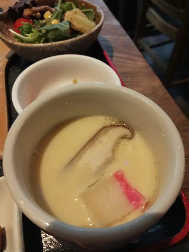 定食有麵豉湯 、前菜、茶漬、沙律蒸蛋及甜品, 相當豐富。