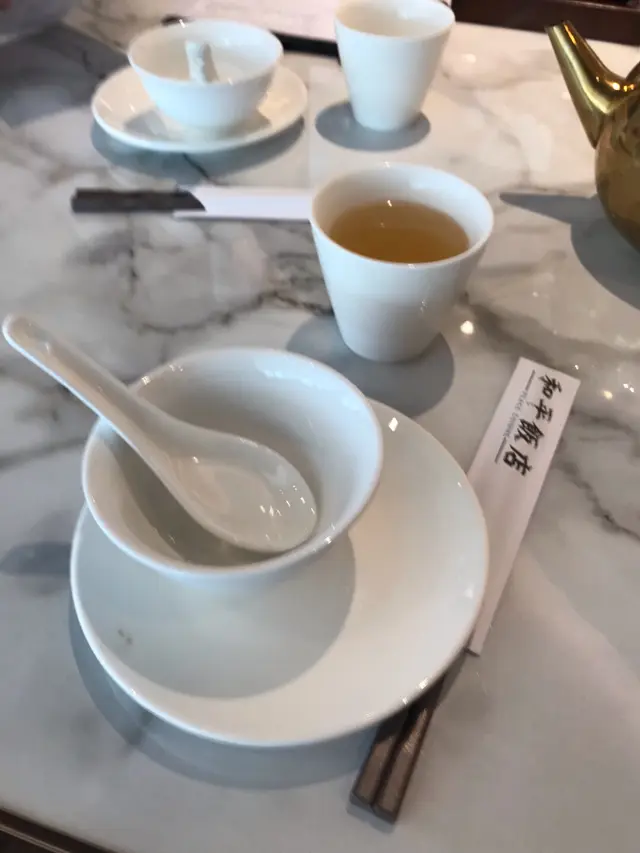 侍應會拎一小壺既金色壺比你自己斟茶飲