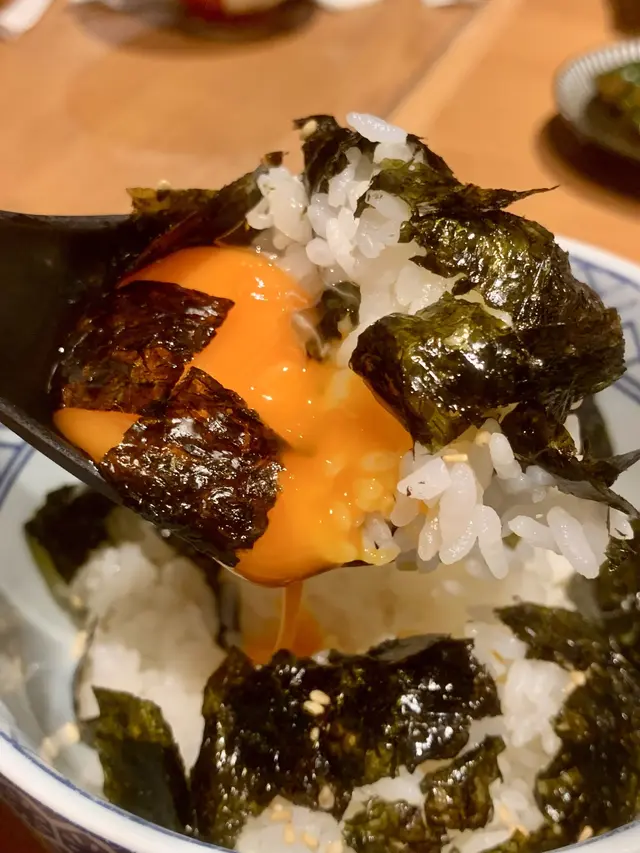食燒肉點可以無飯,日本米飯加蘭王蛋黃,撈勻再鋪滿紫菜,一啖飯一啖和牛,簡直係完美組合! 🙊