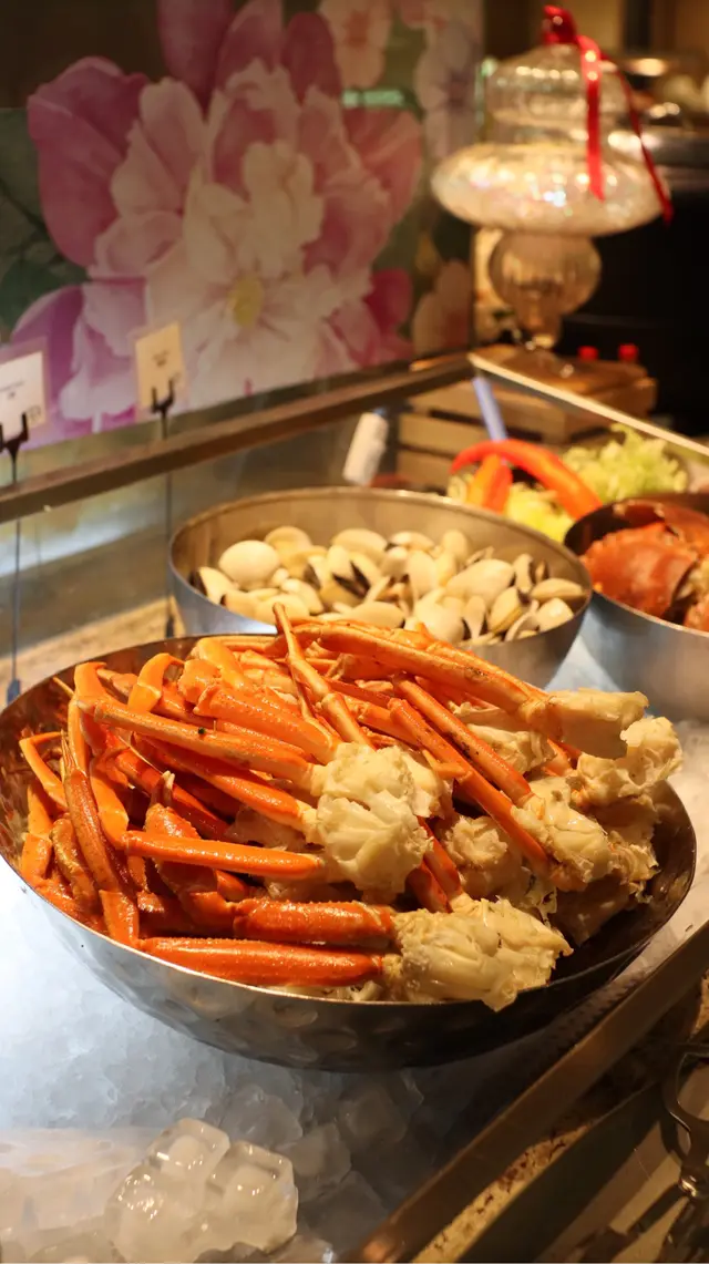 自助餐既冷盤都好出色,大部分食客都主攻5款凍海鮮。蟹腳肉質唔散可原條取出,水潤鮮甜🦀海蝦新鮮又大隻,肉質結實彈牙🦐麵包蟹嘅蟹肉同蟹膏都鮮味。值得一讚係成晚refill速度好🙌🏻👍🏻