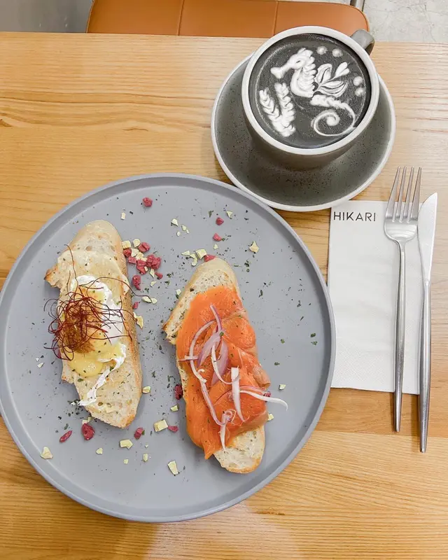 𓂅 「純白日系咖啡店 」 4.coffeineLevel 22022-06-11111 views Follow 樓高兩層的純白日系𝗰𝗮𝗳𝗲 窗邊有數棵耐熱的植物我覺得很可愛便看了一會老闆就主動過來介紹了是來自南非的球根植物長大的話可以比拳頭還要大 ▹ 𝗰𝗵𝗮𝗿𝗰𝗼𝗮𝗹 𝗹𝗮𝘁𝘁𝗲 竹炭咖啡▹ 自選吐司 ⸜⸜健康之選⸝⸝ 竹炭其實是沒有味道有人說竹炭粉是對身體有益我就拿來打卡就好了😂 自選吐司首先要選包ˋˋ五穀酸種麵包ˊˊ再選麵包醬ˋˋ蒜香蛋黃醬ˊˊ最後選配料ˋˋ煙三文魚𓂅𝗲𝗴𝗴 𝗯𝗲𝗻𝗲𝗱𝗶𝗰𝘁ˊˊ可以隨自己個人口味配搭我個人特別喜歡煙三文魚😋很夠味可是最底下的麵包比較難咬𝗰𝗵𝗮𝗿𝗰𝗼𝗮𝗹 𝗹𝗮𝘁𝘁𝗲 竹炭咖啡自選吐司 ⸜⸜健康之選⸝⸝The above review is the personal opinion of a user which does not represent OpenRice's point of view.LikeShare𓂅 「純白日系咖啡店 」 HIKARI https://s.openrice.com/QrKT0hMD300Report Post Ratings4Taste4Decor5Service5Hygiene4ValueRecommended Dishes𝗰𝗵𝗮𝗿𝗰𝗼𝗮𝗹 𝗹𝗮𝘁𝘁𝗲 竹炭咖啡自選吐司 ⸜⸜健康之選⸝⸝Dining MethodDine In