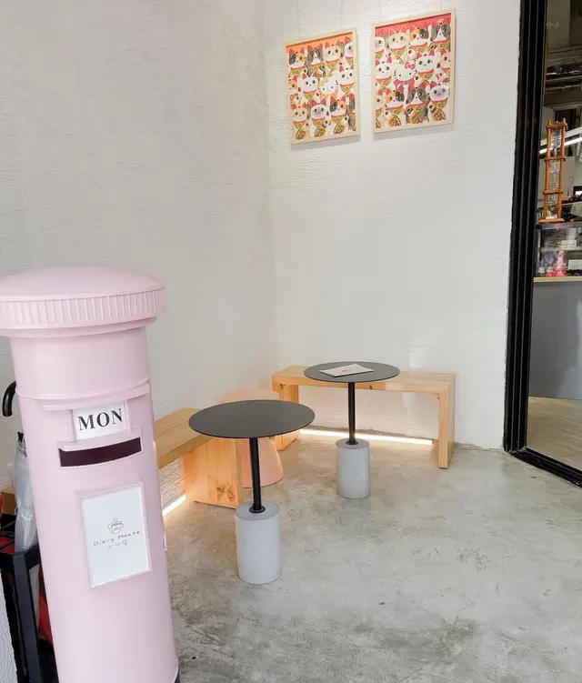 放到店外特別顯眼的粉色郵箱