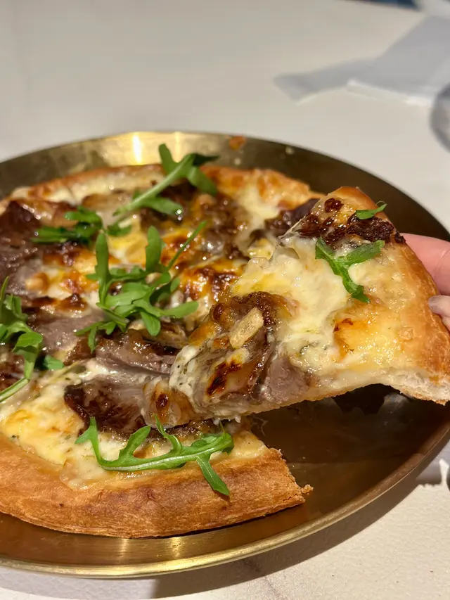 而和牛pizza,和牛肉味濃郁,pizza亦好香脆熱辣辣,佐酒一流🥂