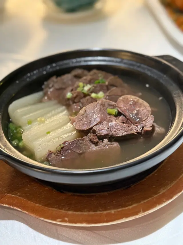 青海氂牛經常遊走終年積雪嘅高山崇嶺,所以其肉質特別有嚼勁👍🏻 配上清甜嘅蘿蔔以清湯腩嘅方法烹調,湯頭極度鮮味,令晉晉都大讚yummy😋