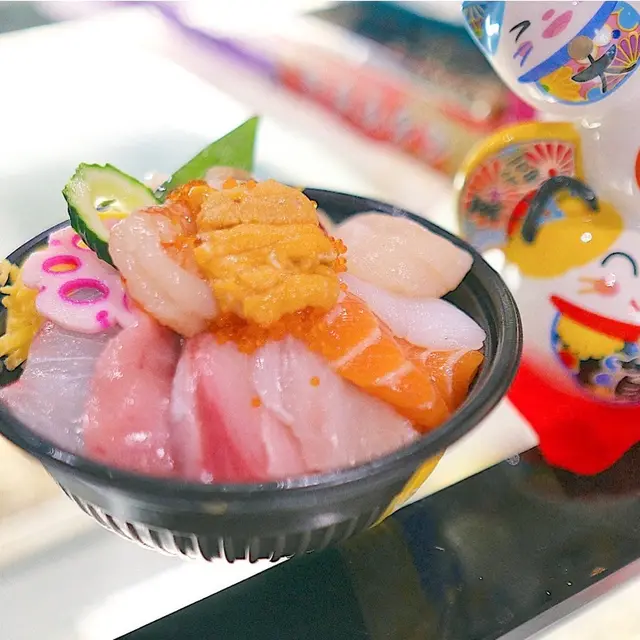 左口魚邊、魷魚、帆立貝、深海池魚、飛魚子、赤蝦、海膽,豐富到不得了!魚生好新鮮:帆立貝可口鮮甜、左口魚邊的魚油豐富,滲入下面嘅丼飯;拖羅大大片油脂甘香!最美味一定係海膽, 濃郁鮮甜口感creamy💕真係好夠飽肚!